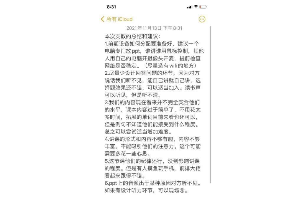 实话实说,线上支教的效果远不如线下,我也真心希望有朝一日能走进农村,走到孩子们的身边,完成一次线下支教。我想,那样我的体悟会更加深刻。我也希望更多的同学能参与到支教之中来,我想我们一定会有别样的收获。