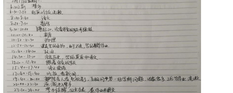 迫于疫情问题,这段时间我们只能在家里以网课的方式进行学习。这段时间极特殊又重要。它虽然限制了我们的生活范围,让我们不得不在一个新的环境中进行学习,但它却给了我们充分的时间对自己进行查漏补缺。在家里,我每天按时完成作业,积极进行体育活动,并利用晚上的时间对自己不足的地方进行补漏。我虽然不能保证每一天都过得很充实饱满,但我可以让我的每一分钟都很有意义。