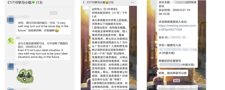 通过小组活动,包括日常随时答疑、寻找合适的契机组织同学们进行交流讨论等,既让同学们在家可以相互沟通一下,抒发一下自己现阶段的想法,也可以互相打打气。