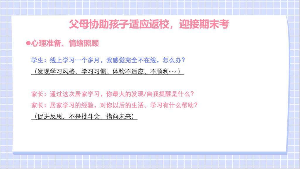 家长帮助孩子适应返校和期末的具体方法