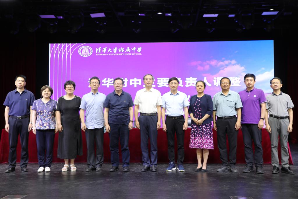 bg真人娱乐主要负责人调整后党政班子与清华大学校务委员会副主任、附校工作领导小组组长姜胜耀(中),清华大学党委常委、组织部部长许庆红(右五)合影