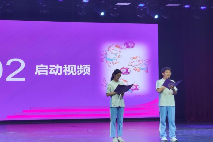 初20级新初三启动会共有四个环节的内容。首先,展示各班启动视频。初20级各班用30秒视频,展示两年来各方面的活动及取得的成果,特色鲜明,活动丰富。形式新颖内容充实的启动视频,展现出积极进取的年级整体风貌。