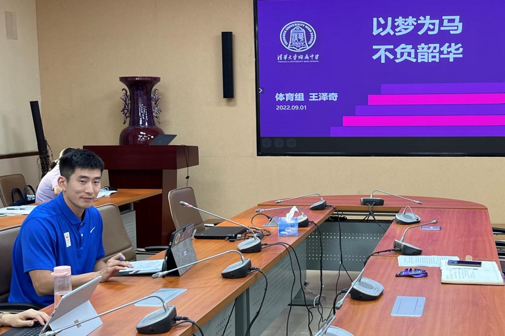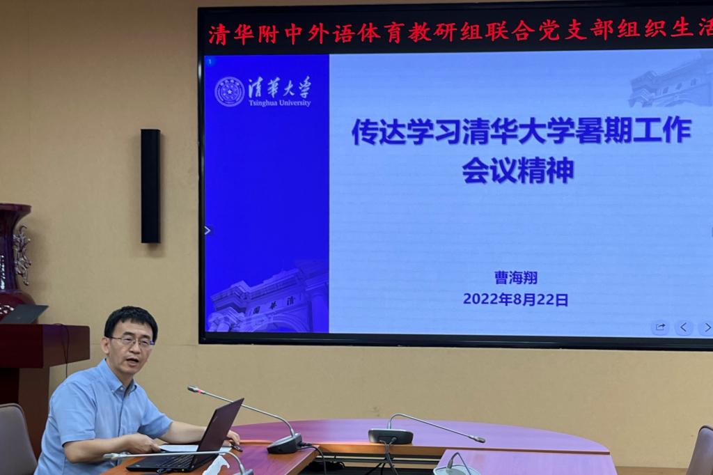 王泽奇老师从高强度、全假期无休的暑期训练出发,向支部党员介绍了今年附中男女篮的比赛情况。王泽奇老师通过丰富的照片向大家展示了运动员训练过程的艰苦和付出。他表示,竞技体育是残酷的,运动员始终面对的是强劲的对手。他们必须不断调整自我,才能不断再出发,成为更好的自己。