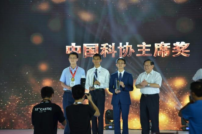 在第32届中国青少年创新大赛中获得中国科协主席奖