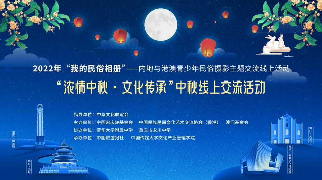 9月17日到18日,2022年“我的民俗相册”——内地与港澳青少年民俗摄影主题交流线上活动在北京、重庆、香港和澳门同步举办。来自北京bg真人试玩、香港慕光英文书院、重庆市永川中学和澳门圣保禄学校的近百名“一对一”结对小伙伴“云端”相聚,传承体验中华优秀传统文化,拍摄民俗摄影作品,播撒内地与港澳青少年友谊的种子。