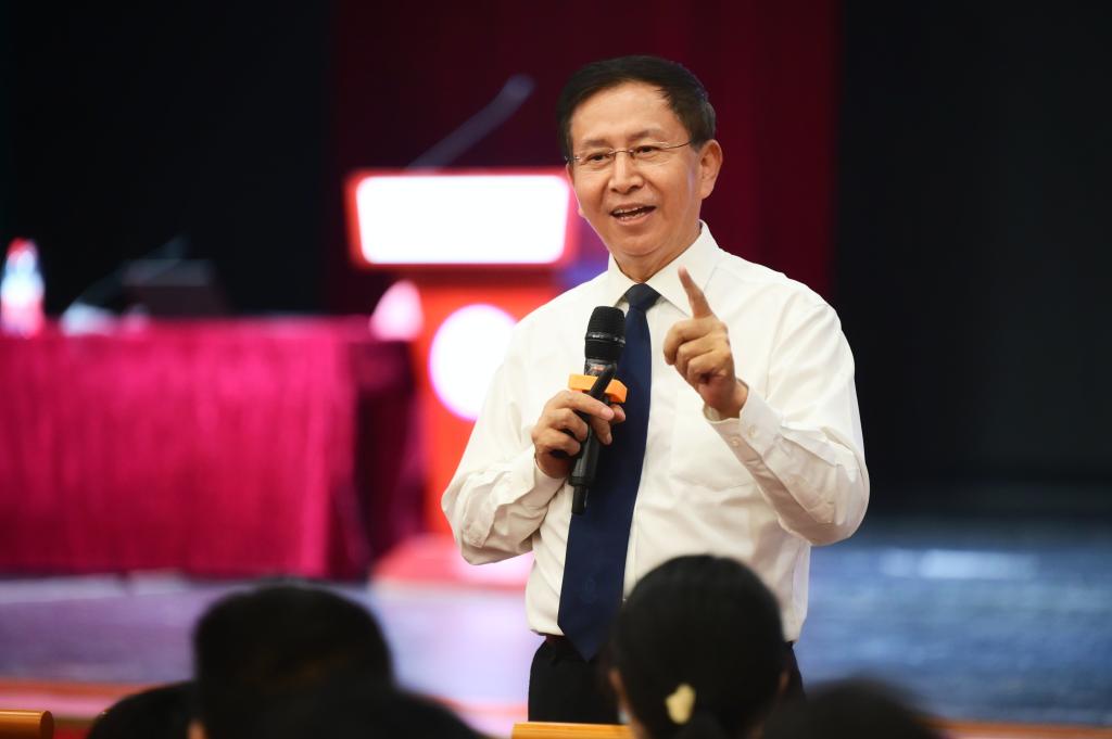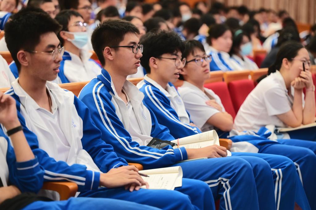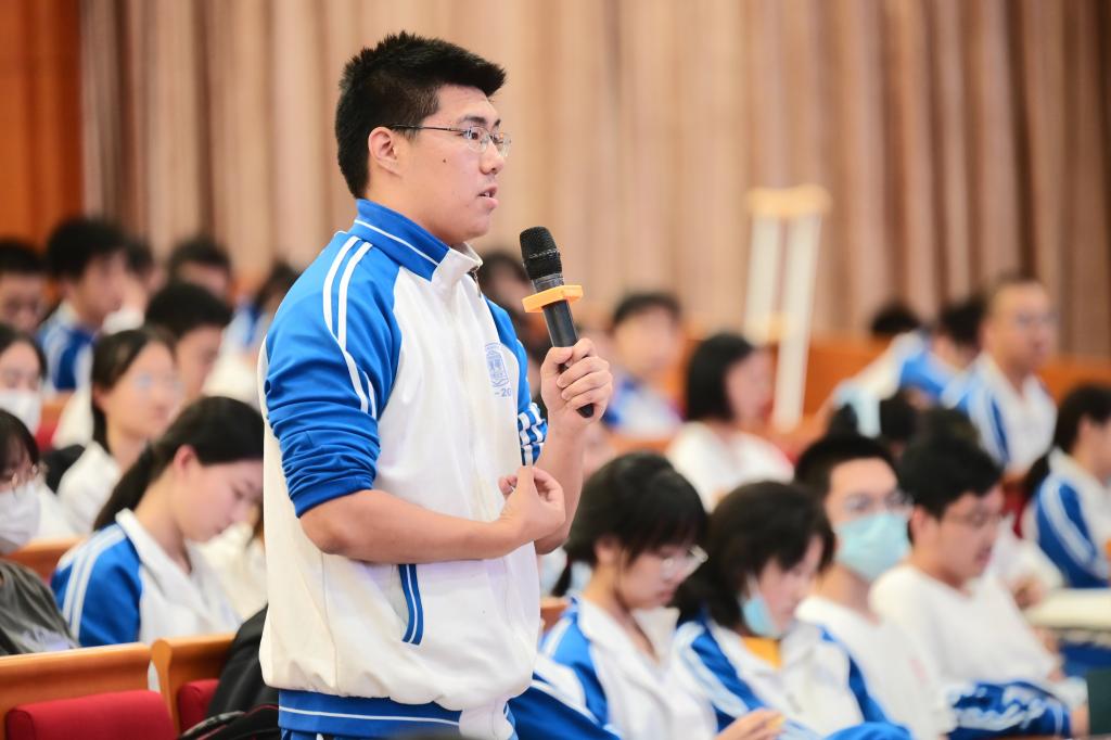 2022年9月24日下午,bg真人娱乐“水木讲堂·对话大家”系列讲座荣幸邀请到国务院参事、清华大学教授何茂春,在清晏楼三层报告厅为高20级全体师生做《国际国内新形势》专题讲座。高20级年级组长曾建川、副组长周建军和宫睿哲、生涯办公室徐琢瑶、高20级全体班主任、部分青年教师及全体学生聆听了讲座。