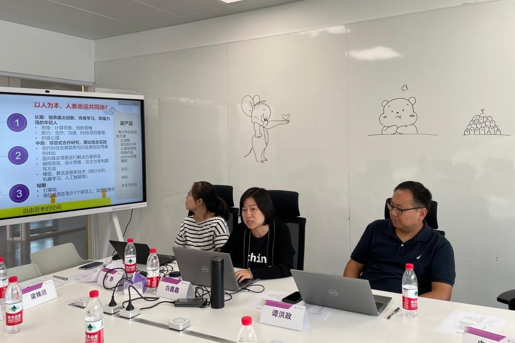 居重艳老师汇报了bg真人娱乐初中人工智能的早期培养情况。居老师以TIME创新思维主题为例介绍了初中创客空间人工智能方向的课程和社团活动。