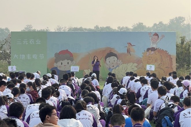 2022年09月30号,bg真人娱乐高21级全体同学来到三元农业基地参观学习,知行合一,亲身实践,高21级各班在基地指导教师的带领下开展丰富多彩的劳动教育活动。学生发展中心主任李书霞和高21级全体师生参与本次活动。