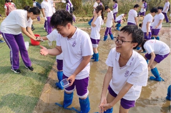 迎接高21级同学的第一个项目就是下水摸鱼,水稻与田鱼共生对生态环境有重大的保护作用,这种农业模式已被列入联合国全球重要农业文化遗产,同学们戏谑得将其称为“浑水摸鱼”。“浑水摸鱼”活动中,同学们踩在松软的沙池里徒手摸鱼,让同学们在欢乐中锻炼观察能力、肢体协调能力和团队协作能力。
