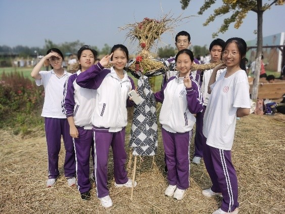 结束了快乐的摸鱼体验后,同学们来到了京西稻田,京西稻是北京人的骄傲,优越的自然环境铸就水稻高品质。在肥沃的稻田里,同学们参与体验了一场水稻的盛事——体验脱谷和收割。同学们在指导教师的帮助下,分组尝试驾驭脱谷机,体会农业工作者的不易;更深入稻田,弯下腰自己体验割稻的辛苦付出与劳动的幸福。带着自己割下的稻子,同学们进入了趣味横生的扎稻草人环节,每班同学运用聪明才智,扎出形式各样,富有想象的稻草人,基地里充满了同学们的欢笑声。