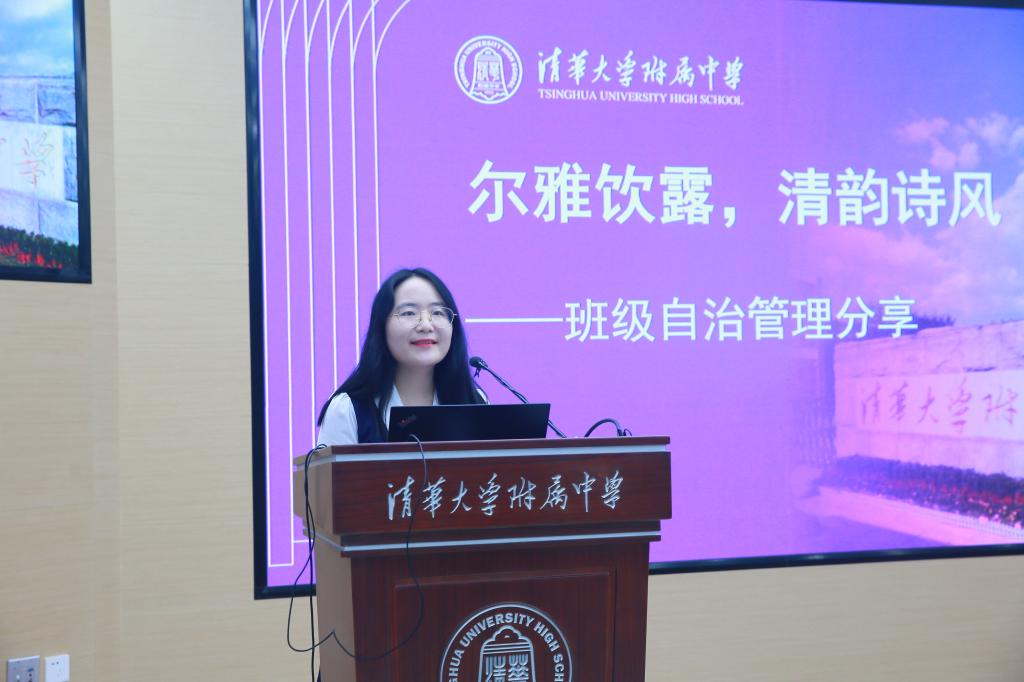 初二6班班主任郭林丽老师做题为《尔雅饮露,清韵诗风——班级自治管理》的汇报,郭老师带领的班级为自治四星班级,她从“班级文化,构建自治场域”“巧妙转化,抓住自治契机”“赞美细化,激发自治动力”三方面,分享了班级自治自律的发展历程,班级管理从“外在约束”“内在自我要求”到“无需提醒的自觉”的转变,充满了班主任的育人之爱与育人之智。