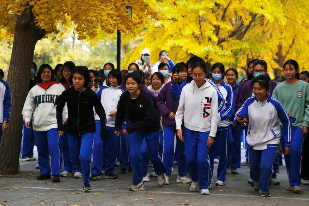 同学们奔向打卡地点