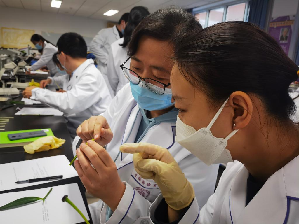 生物学教师进行植物学实验