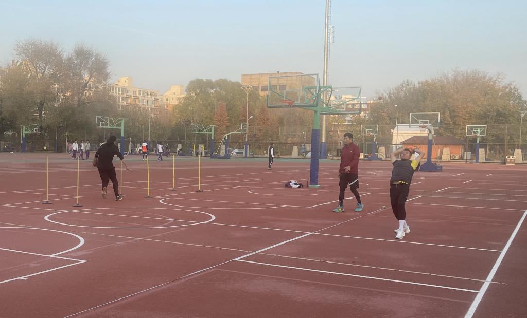 体育教研组对北京市体育中考项目进行考核,其中男教师考核内容为:篮球绕杆、足球绕杆、排球垫球、实心球、引体向上、1000米跑;女教师考核内容为:篮球绕杆、足球绕杆、排球垫球、实心球、仰卧起坐、800米跑。通过本次考核,努力提升体育教师示范水平、保持体育教师体力、体能及各项目运动能力。