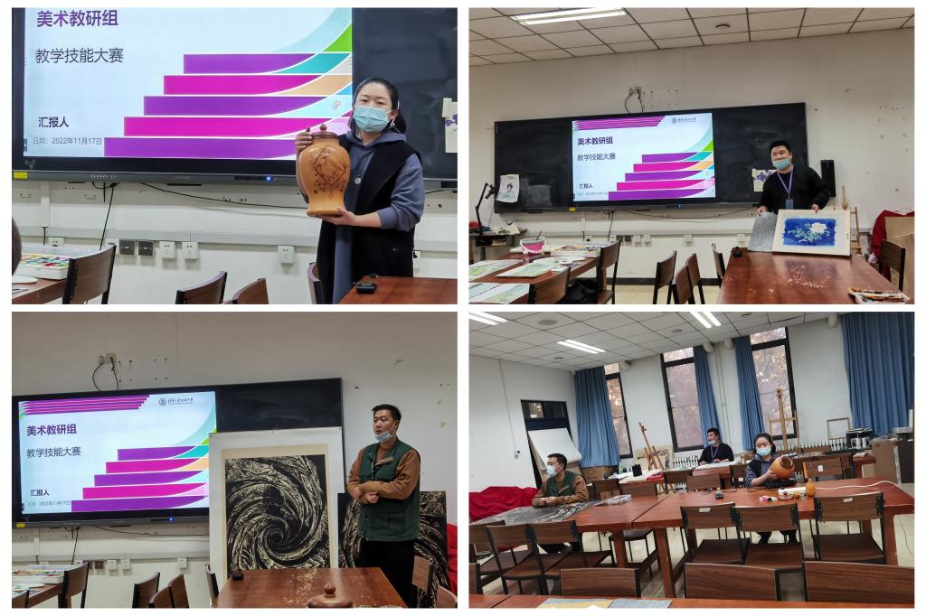 美术教研组的参赛选手可以从绘画、雕塑和设计中任选主题,现场限时两小时制作完成,并对自己作品的主题、画种、创作思路进行现场讲解。通过本次大赛,切实提升美术教师在实践中深化对美术学科核心素养的理解和认知,提高教师的专业能力。