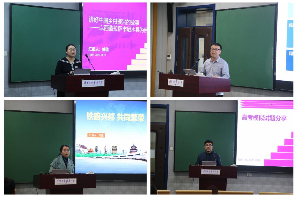 历史教研组开展期中试题例选精评。初中组参赛教师从出题意图、题目解析、学生作答情况以及教学反思这四个方面进行讲评;高中组参赛教师从试题对学生的知识要求和能力要求方面进行切入分析。通过细致的讲评和分析,展现了历史组教师丰厚的学养和谨教研学的态度。