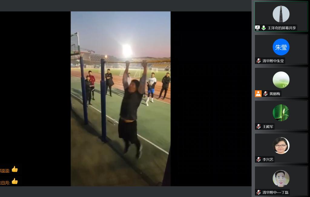 来自体育党小组的王泽奇老师随后发言。作为本次基本功比赛的优胜者之一,王老师并没有过多讲述自己取得的成绩,而是以一个视频为载体,向老师们展示了体育组团结互助、奋勇拼搏的文化氛围。