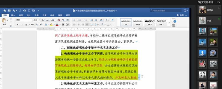 支部线上组织生活会集体学习