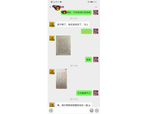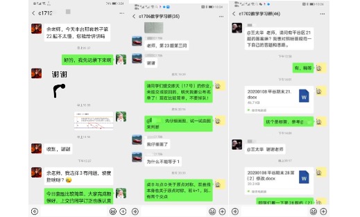 认真进行线上批改作业,及时将电子课本和书后习题答案的电子文档发给学生,对作业有问题的学生及时地与家长沟通。