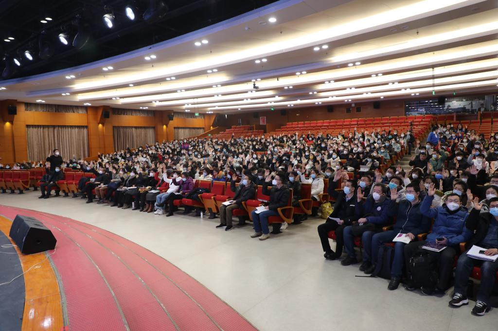 2月10日上午8:00,bg真人娱乐第十二届第一次教代会暨工会会员大会闭幕式在报告厅举行。附中本部和奥森将台路校区全体教职工共600余人参加会议。党委书记曹海翔主持会议。