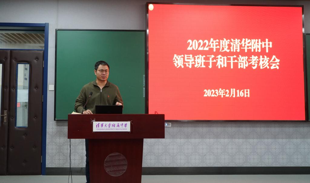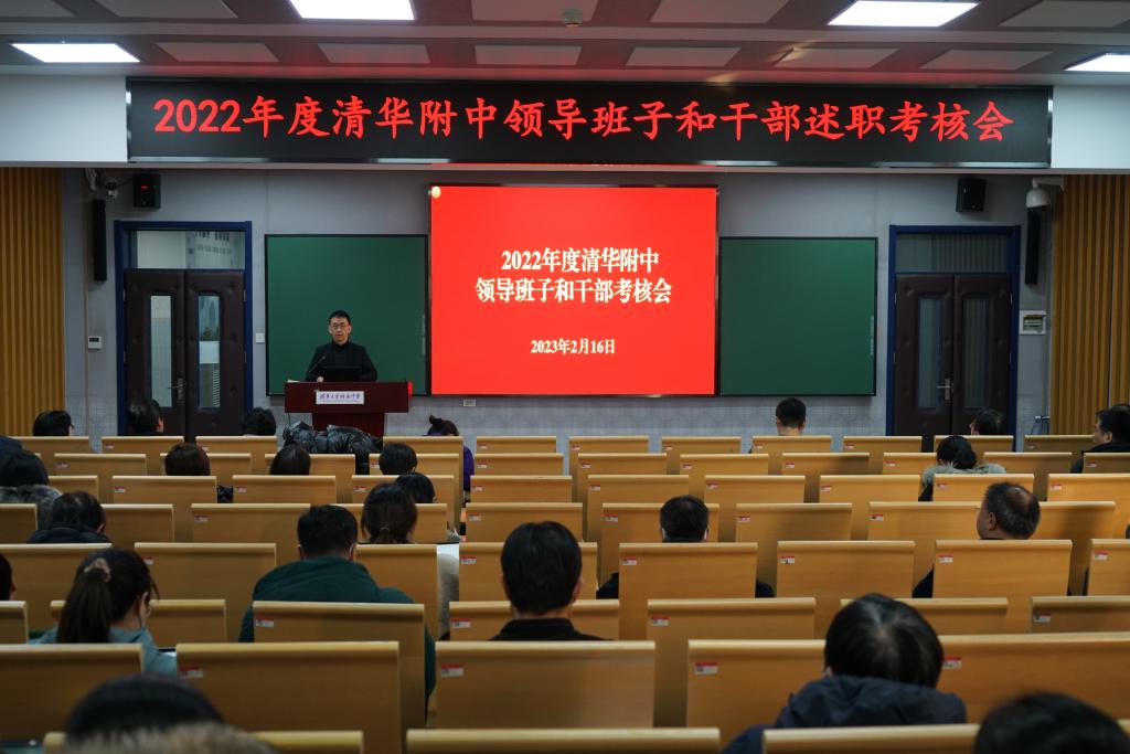 2023年2月16日下午,bg真人娱乐召开2022年度学校领导班子和干部述职考核会。会议由bg真人娱乐党委书记曹海翔主持。bg真人娱乐全体党政班子成员、中层干部、教研组长、年级组长、工会主席、工会副主席、在职党支部书记、民主党派代表、部分办公室负责人及教代表、副高以上教师代表共59人参加会议,清华大学组织部干部教育监督办公室高级主管丁力老师参加了述职会并现场组织了对干部的民主测评。
