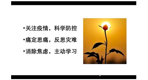 同学们,“风声、雨声、读书声,声声入耳,家事、国事、天下事,事事关心”。网上有人说,没有疫情教育的“停课不停学”,学了也白学;我们不能“躲进小楼成一统,管它春夏与秋冬”,我们应该铭记这次灾难带来的彻骨之痛。 “死亡,是一个人的悲剧,遗忘,是一个民族的悲剧。”面对病毒的挑战,我们应该坦诚应对,敬畏自然。