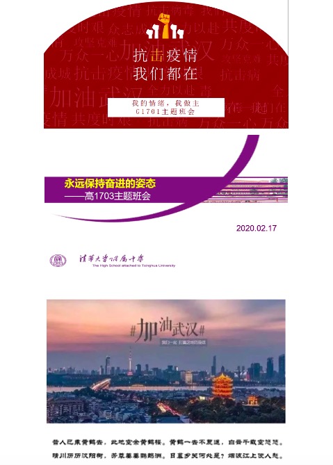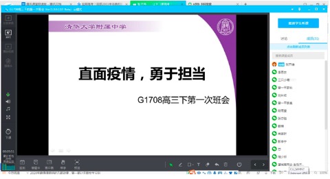 面对疫情,全国人民众志成城,相信我们一定会赢得这场战“疫”的胜利。这次班会同样凝聚了全体同学的意志,激发同学们线上学习的动力。面对停课不停学的战场,附中高三的全体学生一定准备好了,也一定会一战而胜。