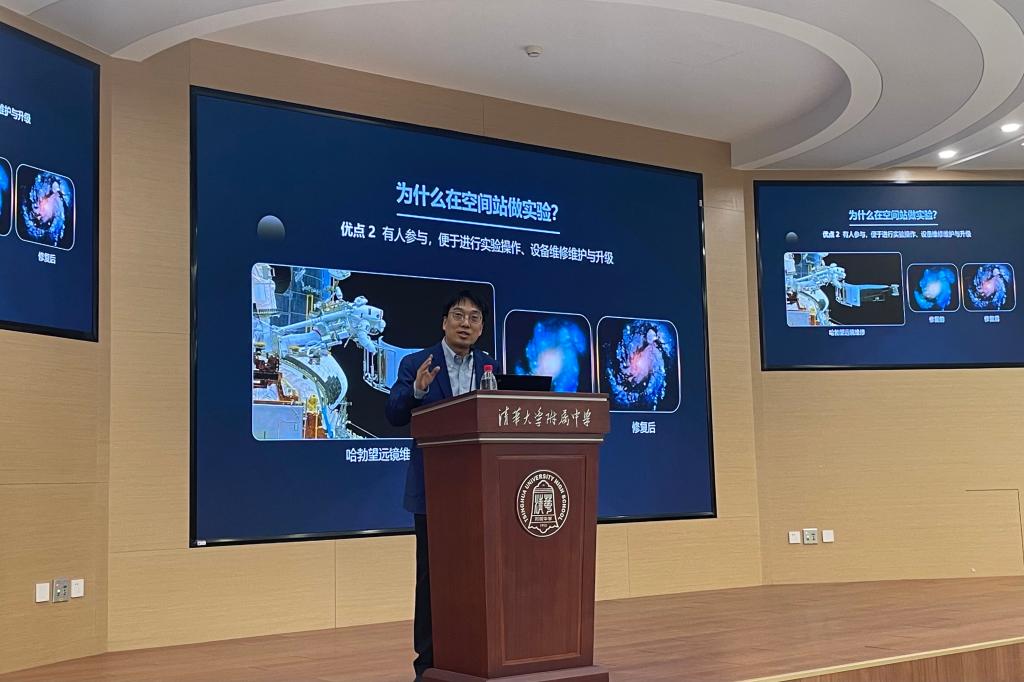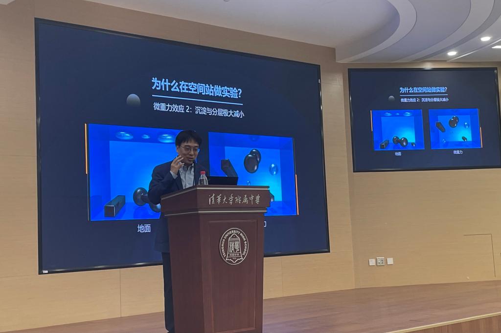 张伟专家介绍了目前已经研制的22种科学实验柜和舱外试验设施,同时提出了本次讲座的核心问题:为什么在空间站做实验?张伟专家认为有几条理由:第一,空间站可以长期提供微重力,辐射等实验环境;第二,在空间站中,有人参与,便于进行实验操作,设备的维修维护与升级。张伟专家还耐心地解释了“微重力”等概念。