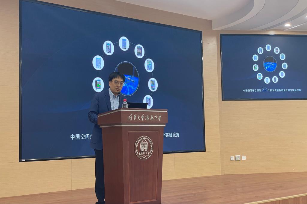 接下来,张伟专家向同学们介绍了中国载人空间站的构成,包括问天号实验舱、天和号核心舱、神舟载人飞船、天舟货运飞船和梦天号实验舱,形象生动的展现我国载人空间站的发展成果。