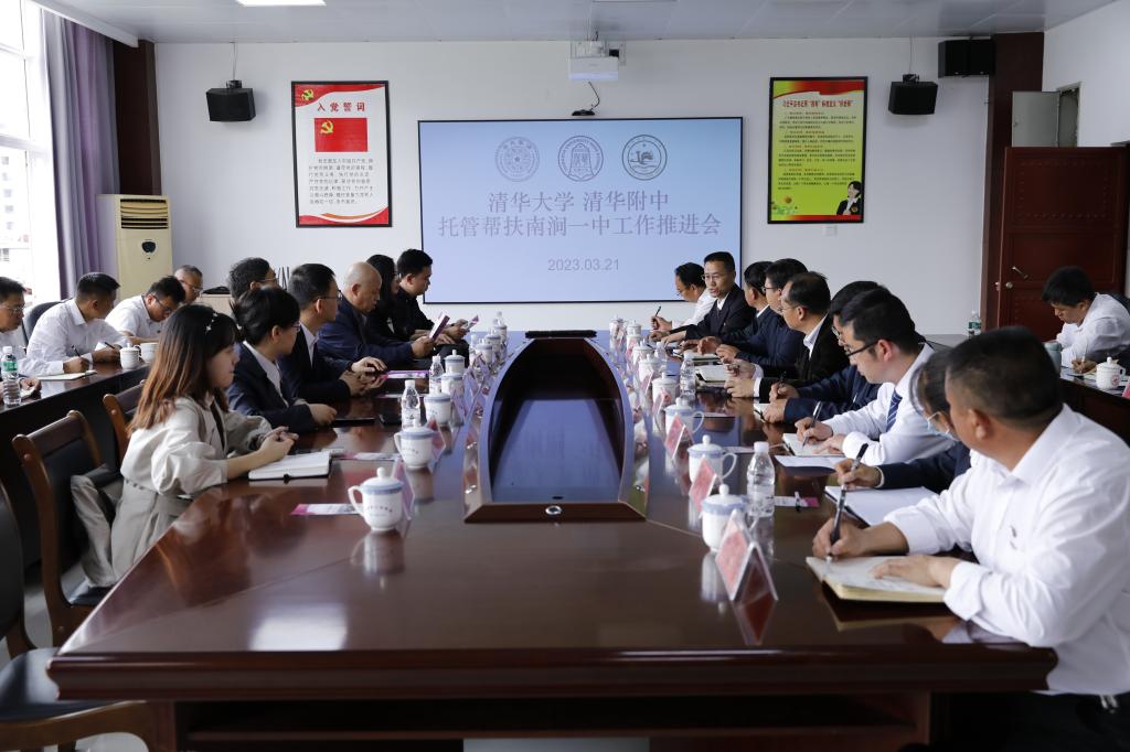 21日下午,清华大学、bg真人娱乐托管帮扶南涧一中工作推进会在南涧一中会议室召开,清华大学挂职南涧县人民政府副县长朱涛,清华大学对口支援办公室副主任宗菁,bg真人娱乐党委书记曹海翔,bg真人娱乐副校长、永丰学校执行校长孟卫东,对口支援办公室主任吴新胜,南涧县政府、教育体育局相关领导,以及南涧一中创新实验班教师代表出席会议。南涧一中党总支书记杨映红主持会议。