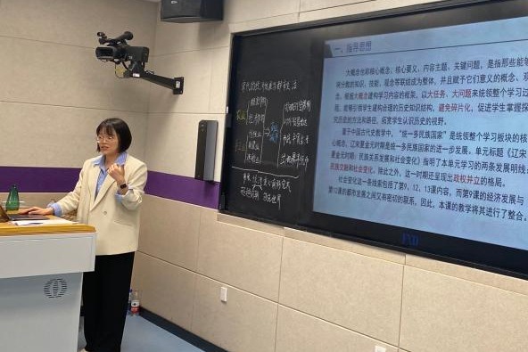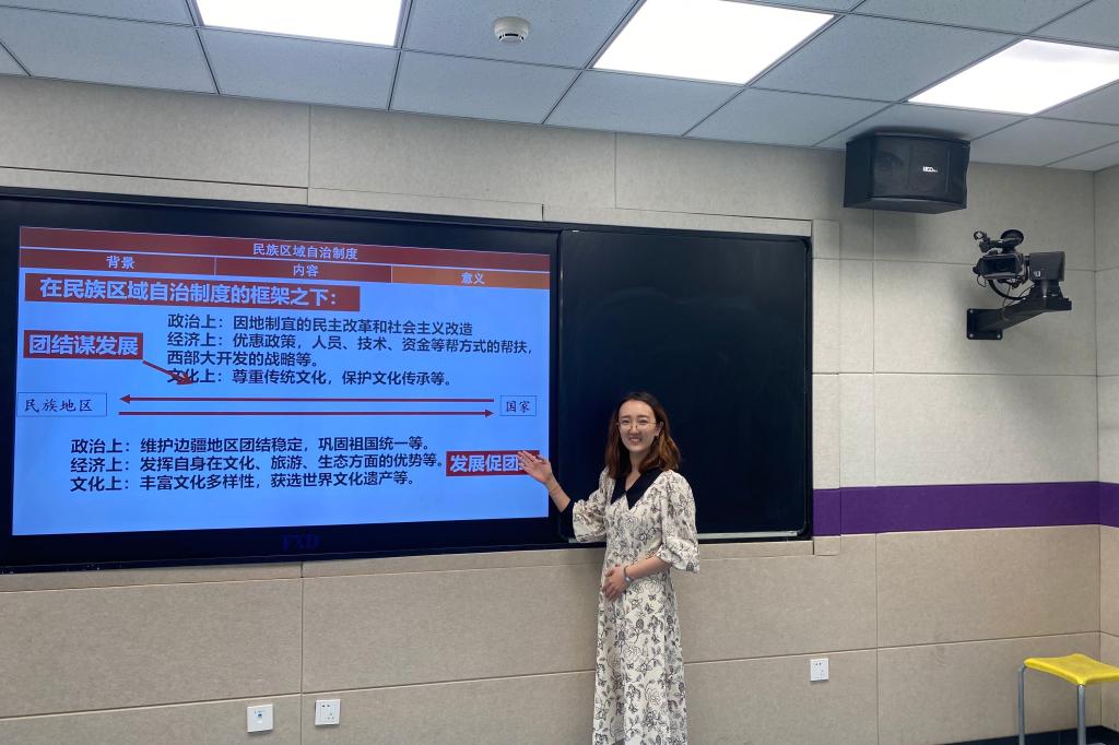 活动第一个环节是bg真人试玩张月瑶老师为初二讲授新课《民族大团结》。海淀区历史学科新教师们在认真聆听和记录课堂相关内容。随后,张月瑶老师从本课的教学设计、问题串拟定、选材布局等方面为新教师们说课。
