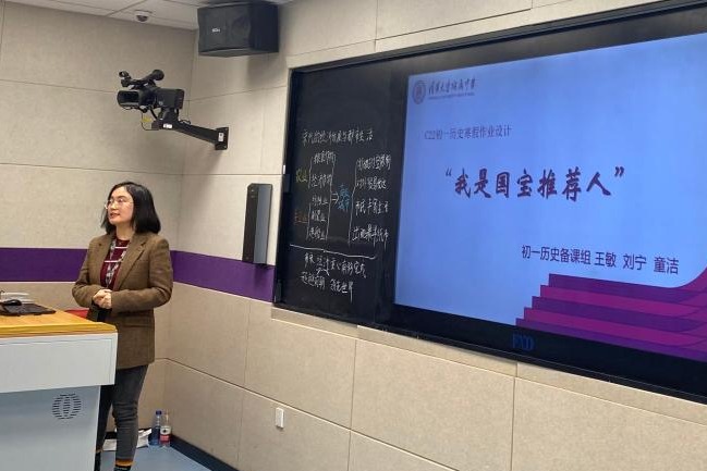 bg真人试玩初一年级备课组长王敏老师向听课教师讲解了初一备课组在寒假开展的特色活动,介绍了“双减”背景下初一年级的特色寒假作业“我是国宝推荐人”。