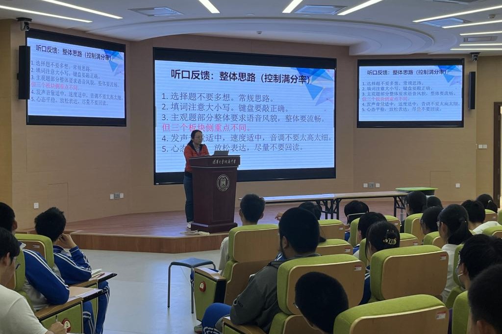 高三英语备课组集中研讨第二次听说高考备考策略,并组织学生聆听陈彦竹老师的专题讲座,为满分助力。陈老师基于研讨结果及第一次听说高考的评标与阅卷经验,从实操层面给学生以详细的指导。备课组全体教师聆听了讲座。