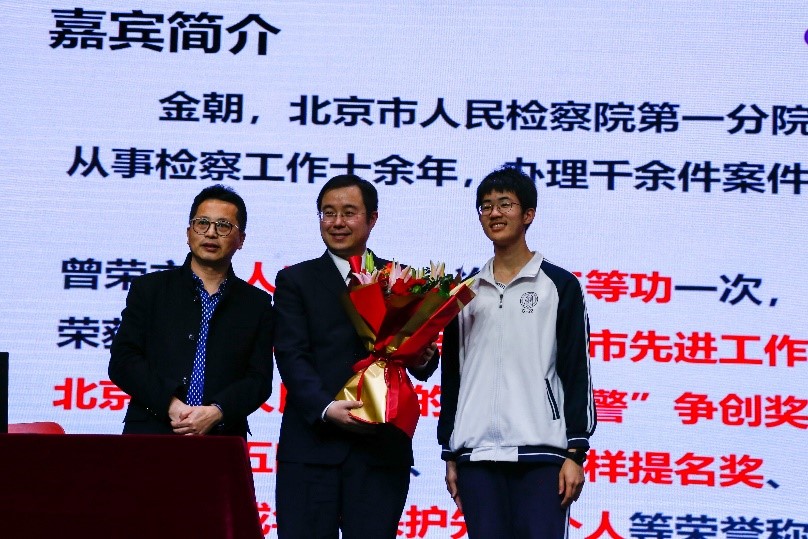 2023年3月29日下午,高22级“法治进校园”生涯讲座在报告厅顺利举行。本次讲座有幸邀请到北京市人民检察院第一分院第七检察部金朝主任担任主讲嘉宾,旨在帮助学生了解未成年人保护的相关法律知识,提高法律素养和防范意识。学生发展中心主任李书霞,高22级年级组长罗长文,生涯办公室徐琢瑶老师出席本次活动。