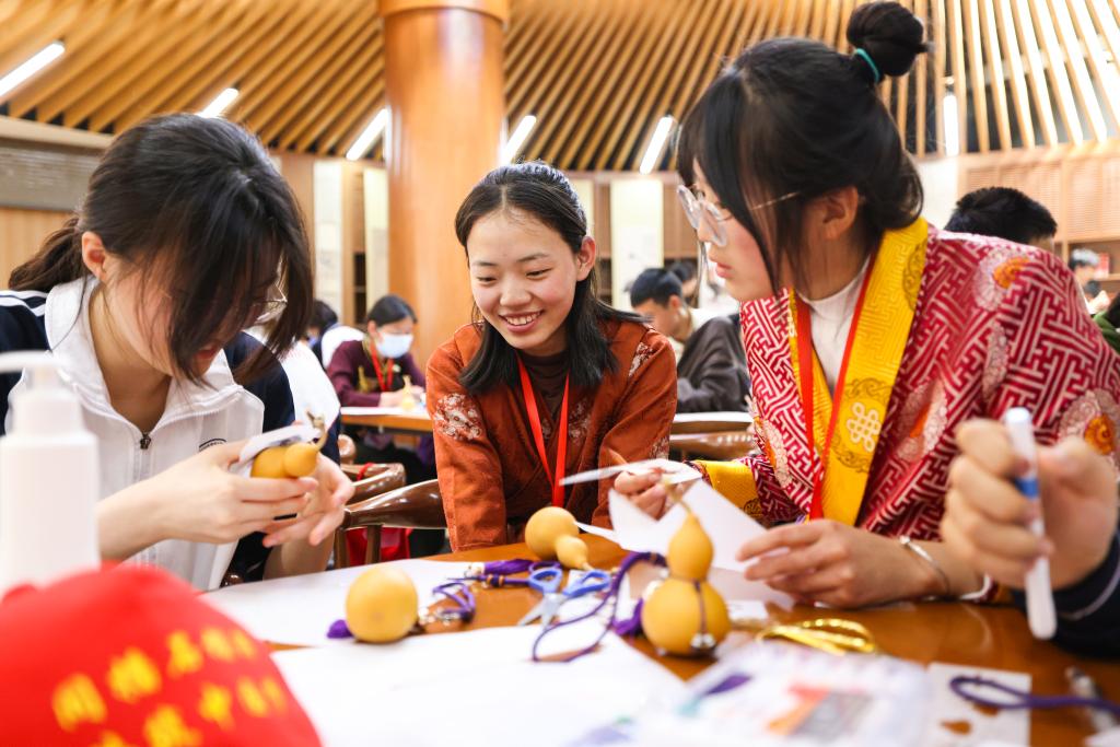 随后,两地学生同上由bg真人试玩美术教研组教师裘昀指导的美术手工课《同心筑梦——非遗手作葫芦艺术》。在课堂上,同学们了解了葫芦在中国文化中承载着的特殊意义,并自己亲手绘制。课后,两地学生互相赠送象征着友谊与祝福的葫芦,互道珍重。