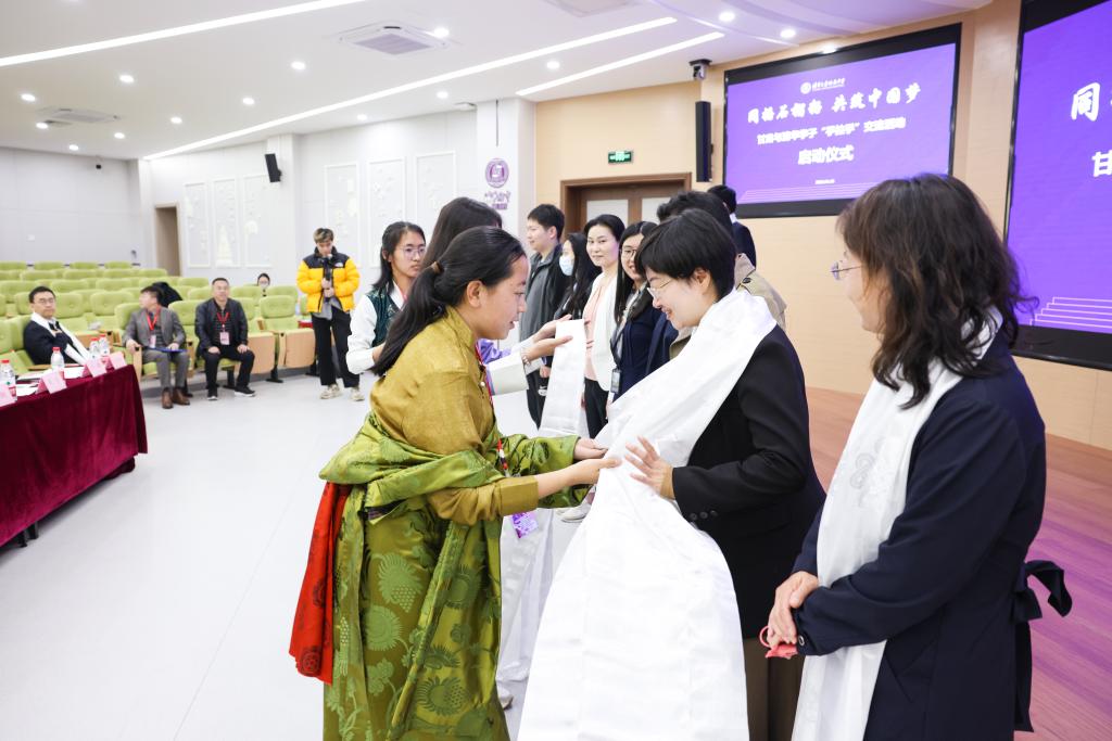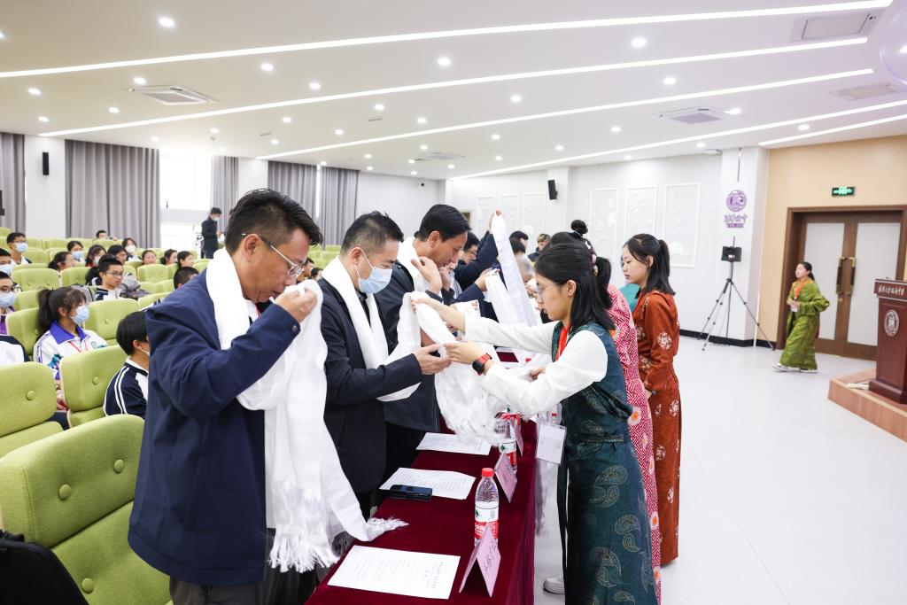 甘肃学生代表为教师代表敬献哈达