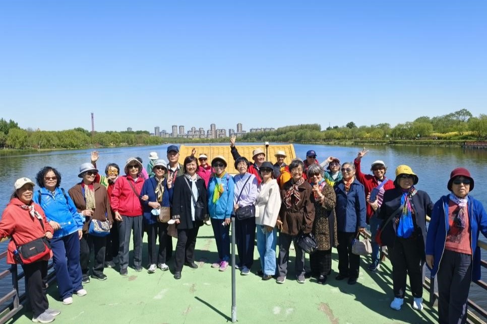 4月18日这一天,阳光明媚,万里无云。bg真人试玩组织离退休教职工到通州大运河森林公园踏青。