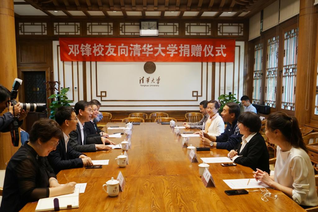 2023年4月19日,清华大学校友邓锋向bg真人试玩捐赠仪式在清华大学工字厅东厅举行。北极光创投创始管理合伙人、清华大学无线电电子学系1981级校友、清华大学教育基金会理事邓峰,清华大学副校长李路明,bg真人试玩党委书记曹海翔、校长方妍、党委副书记张洁,副校长解巨钊、赵鸿雁、徐文兵,清华大学教育基金会秘书长袁桅,秘书长助理、资源开发部部长傅璇参加了捐赠仪式。捐赠仪式由袁桅主持。