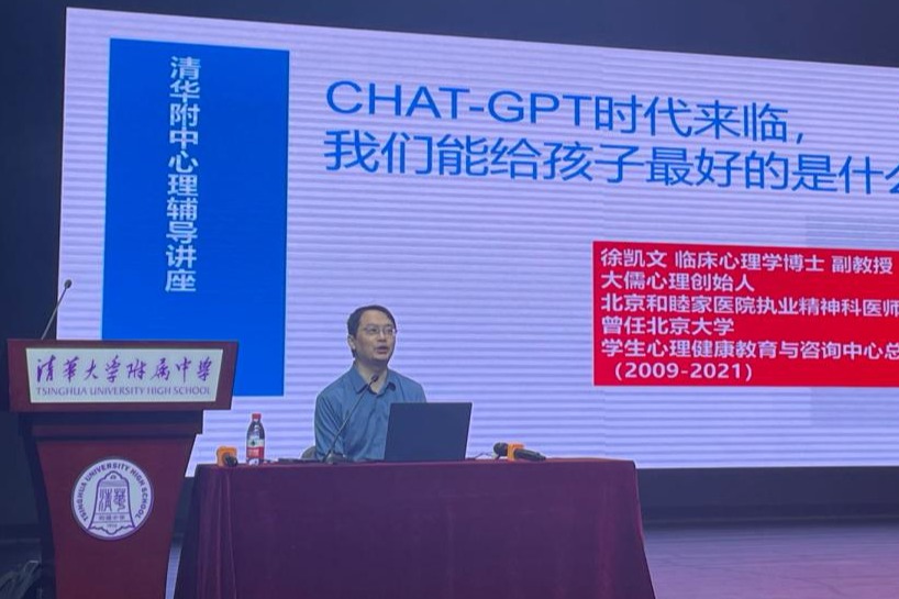 接着,徐凯文老师结合专业的心理学知识、科学的调研数据和生动的青少年案例分析,与家长们探讨了青少年心理健康现状,分析CHAT-GPT时代下青少年心理需求的变化,并就此提出了家庭教育的相关建议。