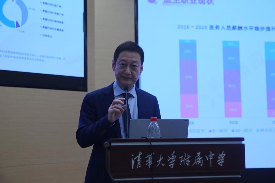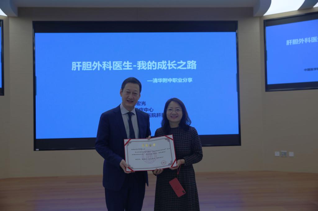 在医学专业专场,来自中国医学科学院肿瘤医院肝胆外科的王宏光医生为同学们带来了题为《我的成长之路》的精彩讲座。王医生首先以自己准备讲座的经历为例,提醒大家在进行自己的生涯规划时,要警惕人工智能的“规划”。随后,王医生介绍了医生这项工作需要的技能,并为大家介绍了医生职业现状。最后,王医生以自己为例,介绍了成为一名医生的具体职业发展路径,为同学们展现了清晰的医生成长之路。