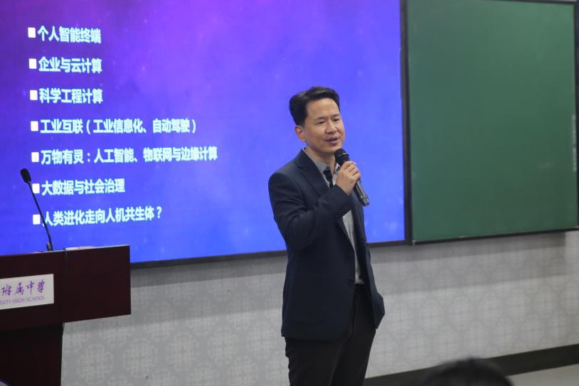 在计算机行业专场,清华大学同方股份有限公司的刘锋老师首先向大家介绍了全球计算机产业的发展,内容涵盖科学工程计算、人工智能、物联网与边缘计算、大数据与社会治理等。随后,刘老师介绍了产业发展趋势,为同学们呈现了计算机专业的就业前景。最后,刘老师也从自己的视角给出了同学们些许职业规划的建议,鼓励同学们志存高远,在考虑自身的同时,也要记得个人奋斗融入更伟大的时代洪流,兼顾个人努力与历史的潮流。
