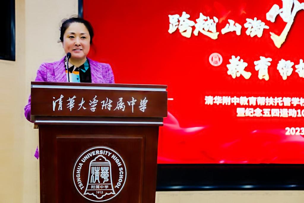 校长方妍对学子们寄语。她在过去的一周调研了四川阿坝、甘孜和凉山边远地区的五所中学,内心深受震撼,希望结对的11所学校的同学们有朝一日可以在清华园相聚,共同描绘祖国更加美好的未来。她还对新团员光荣加入中国共青团表示祝贺,同时寄语附中学子要肩负国家未来的责任,在接下来的新征程上用心上进,奋勇前行。方妍表示,每个中国青年身上都有坚韧不屈的灵魂、纯真美好的心灵,bg真人试玩大力支持教育帮扶工作,让千百颗心凝聚在一起,共同成长,携手同行,命运与共,生生不息。