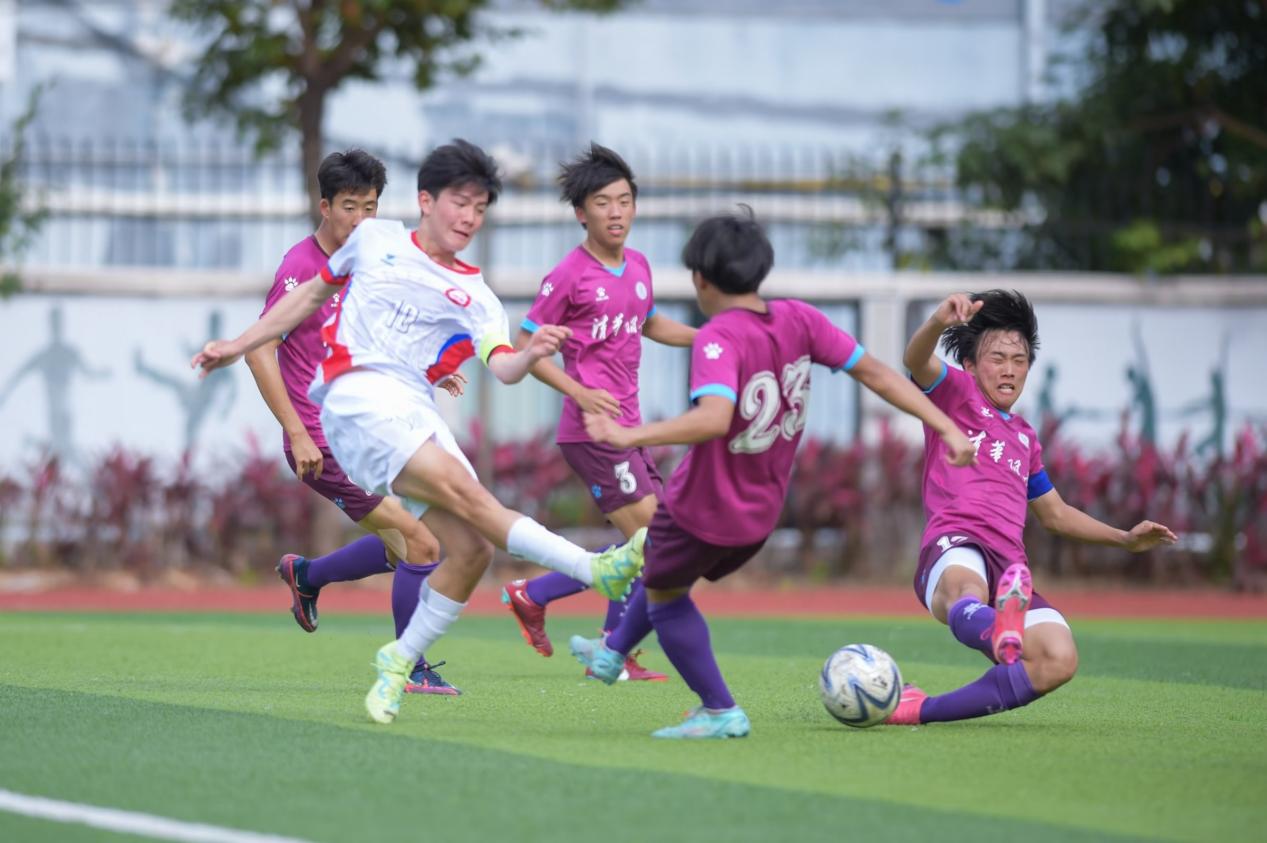 小组赛阶段,首场面对华南师范大学附属中学,队员们稍显紧张,并没有打出很好的配合,下半场率先攻入一球,随后防守出现漏洞被对手打平,最终以1:1结束比赛。后两场队员们调整状态,以2:0战胜福建省厦门第二中学和深圳市翠园中学。三场比赛,两胜一平积7分,位列小组第一。
