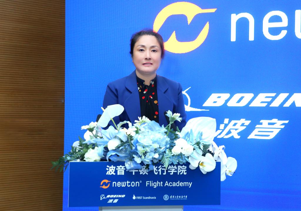 波音中国总裁谢利嘉女士向bg真人娱乐学生代表交付“波音·牛顿飞行学院”钥匙