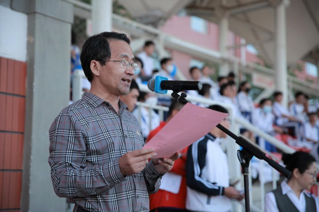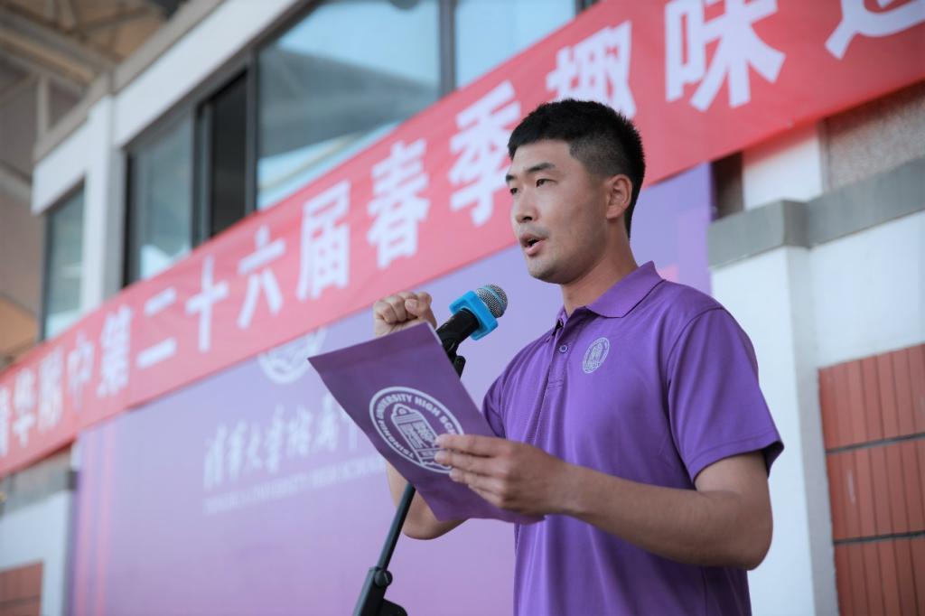 随后,高2214班周健和代表全体学生运动员宣誓,体育组张阳老师代表裁判员宣誓。