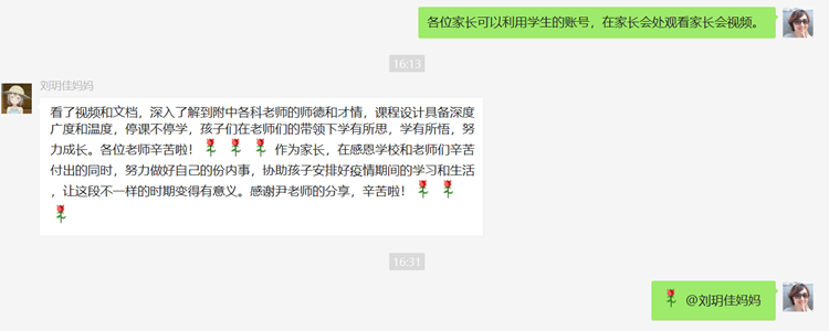 家长会期间,各班班主任通过多样的形式,反馈了前一段时间同学们居家学习与问卷调查的基本情况,展示了同学们在劳动课等多样课程中的优秀表现,同时也指出了存在问题和改进建议,并引导家长做好学生居家学习期间的亲子沟通,关注学生的心理变化,指导学生养成良好的学习习惯,从而保障学生度过充实有收获的居家学习时光。此外,各科备课组长也向家长介绍了“停课不停学”期间的具体学习要求,为学生的自主学习提供了充足资料和具体的指导建议。