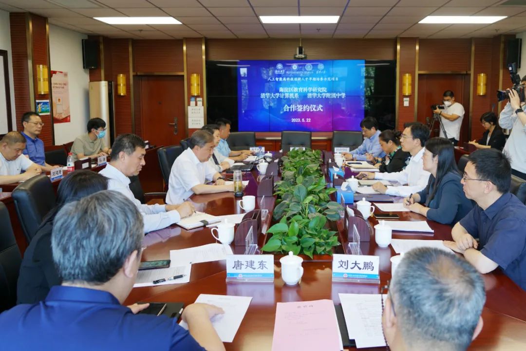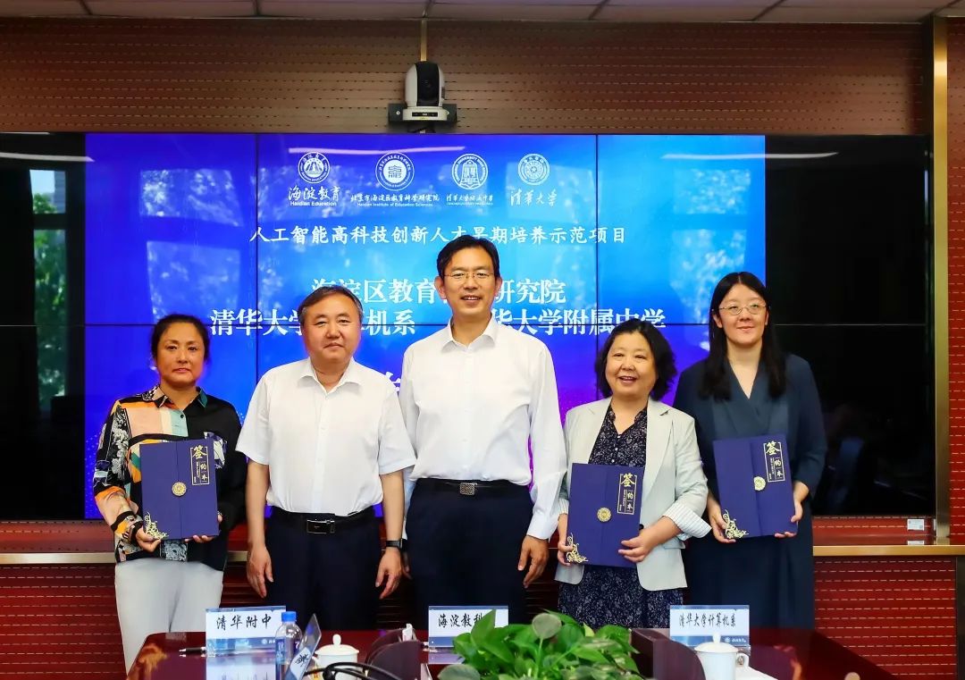 为进一步落实党的二十大报告提出的教育、科技、人才三位一体建设的要求,在清华大学和区教育两委支持和推动下,2023年5月22日,海淀区教科院、清华大学计算机科学与技术系、bg真人试玩等三方举行人工智能拔尖创新人才早期培养示范项目签约仪式,携手聚焦建设高质量教育体系,共同探索科技人才培养的新路径、新方法,深化创新人才的早期培养工作。