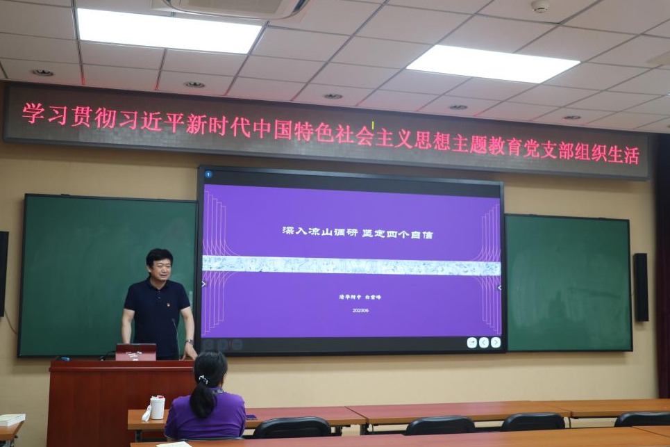 党委委员、副校长白雪峰在语文艺术党支部讲党课
