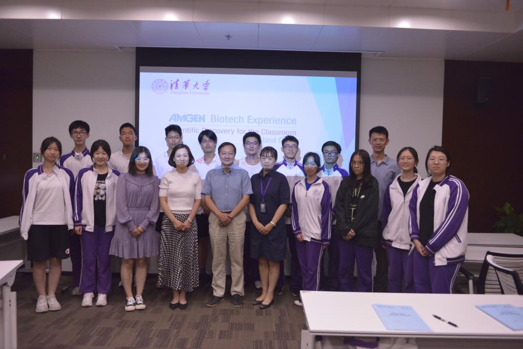 2023年6月14日,bg真人试玩高二年级16名同学前往清华大学生物医学馆参加全球性实验实操科普项目Amgen Biotech Experience(以下简称“ABE”)结业式。本期项目活动历时一学期,活动覆盖高二年级500余人,是ABE项目第一次走进中国大陆地区的高中校园,也是影响范围最大的一次活动。清华大学生命学院副院长刘栋、清华大学-北京大学生命科学联合中心(以下简称“生命中心”)办公室主任、ABE项目中国大陆地区负责人江轶、bg真人娱乐生物组组长刘健及项目指导老师崔樱子,任课教师王宣,徐敏参与此次结业式。
