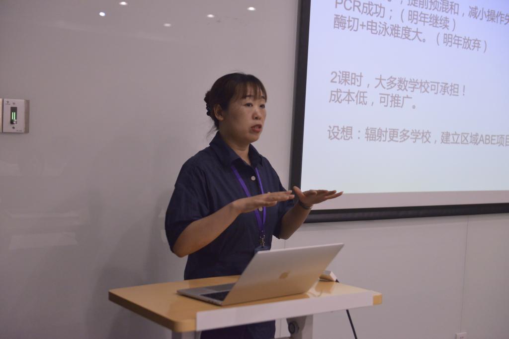 任课教师代表王宣分享了bg真人娱乐实施ABE项目的情况及反思。本项目校本课旨在创新拔高,激发学生兴趣,启发职业发展;增强科技自信自立、厚植家国情怀。500人实验课旨在理论联系实际,让学生真实接触到微观而抽象的基因、PCR等现代生命科学涉及的内容。王宣分享了整合ABE课程、高中课标要求并成功实施的经验,并分析课程结果,提出可推广、辐射到更多中学的低课时成本、低经济成本的设想。